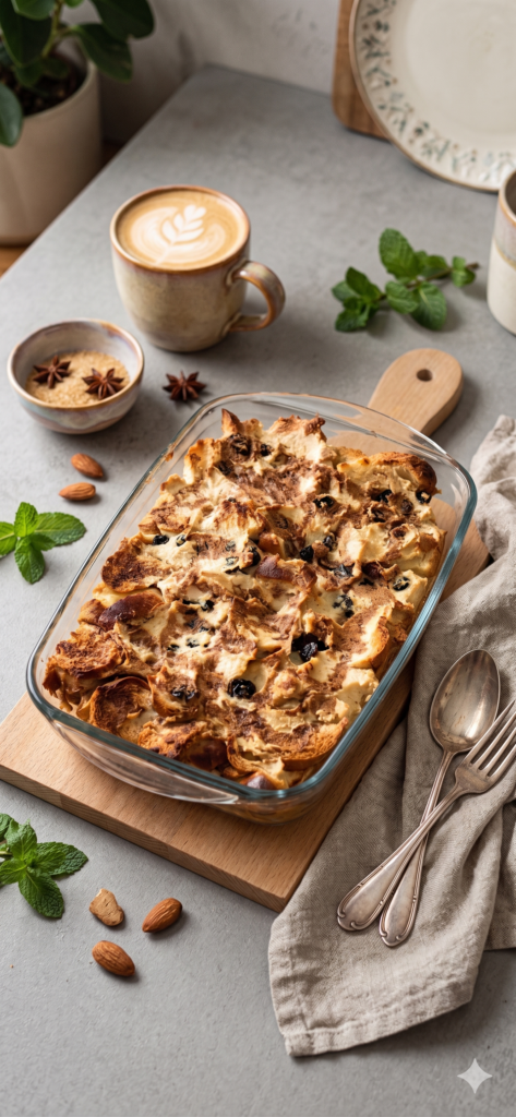 Vianočku nakrájaj na menšie kúsky. Pre vegan verziu pouzi vianočku, ktorá je aj bez vajec, alebo ju nahraď rožkami či toastovým chlebom. Jablko očisti a nastrúhaj nahrubo (alebo nakrájaj na tenké plátky). Hrozienka môžeš vopred namočiť do horúcej vody, aby zmäkli.